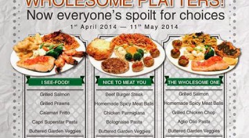 Capricciosa is offering their Capri's Wholesome Platters at RM49.90 each: I See-Food Nice To Meat You The Wholesome One Homemade Lemonade / Mint Spritzer available at RM9.90 per pitcher (usual price:RM19.90). Terms and conditions apply. Visit their restaurant for more details. Available at: Capricciosa - Pavilion Kuala Lumpur Capricciosa - Sunway Pyramid … [Read more...] about CAPRI;S WHOLESOME PLATTERS PROMOTION