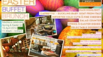 Mediteca Wine Tapas KL celebrates spring & Easter on 19 April 2014. Chef-Owner Riccardo Ferrarotti will feature the weekly Saturday Buffet Brunch (11.30am-3:00pm) in addition to some spring & Easter Inspired offerings including the main highlight, “Capretto” - Whole Suckling Baby Goat from Italy served with roasted & buttered vegetables. Mediteca provides the … [Read more...] about EASTER BUFFET BRUNCH AT MEDITECA