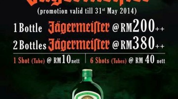 love Jagermeister? Get it with a special price from Movida. 1 Bottle @ RM200++ 2 Bottle @ RM380++ ... also try the shots. Date : Till 31st May 2014 Do contact Movida for reservation and more information. Contact: Unit C-03 & C-03A, Block C, Sunway Giza, No. 2 Jalan PJU 5/14, PJU 5, Kota Damansara, 47810 Petaling Jaya. Tel: 03 6141 8022 Website: … [Read more...] about PARTY WITH JAGERMEIRTER AT MOVIDA KITCHEN.BAR.CLUB LOUNGE