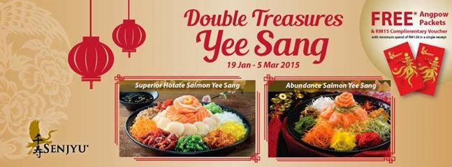 Senjyu Japanese Restaurant is offering their: Superior Hotate Salmon Yee Sang Abundance Salmon Yee Sang FREE Ang Pow Packets and RM15 Complimentary Voucher with min spend of RM128 in a single receipt. Terms and conditions apply. Visit their restaurant for more details. … [Read more...] about SENJYU CNY PROMOTION