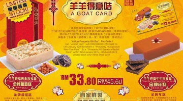 Hui Lau Shan is offering these Prosperity HK Signature Radish Cake at RM25.80 Prosperity HK Signature New Year Cake at RM19.80 Available from 22nd January 2015 at all outlets. Terms and conditions apply. … [Read more...] about CNY PROMOTION @ HUI LAU SHAN