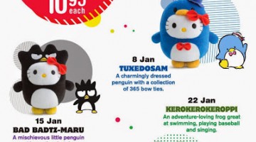 Get the McDonald's Hello Kitty Bubbly World design at RM10.95 each. 1st January 2015 - My Melody 8th January 2015 - Tuxedosam 15th January 2015 - Bad Badtz-Maru 22nd January 2015 - Kerokerokeroppi 29th January 2015 - Osaru No Monkichi No purchase required. Terms and conditions apply. Visit their restaurant or website for more details. … [Read more...] about HELLO KITTY BUBBLY WORLD WITH MCDONALDS