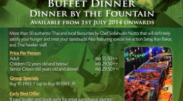 Satisfy your buffet dinner craving this July! Available from 1st July 2014 onwards Dinner with Chef Sollahudin Nutto ever scrumptious spreads of more than 50 authentic Thai and local favourites that definitely treat your hunger! Also featuring special live action satay, ikan bakar and Thai hawker stall! CHAKRI XPRESS, Alamanda … [Read more...] about CHAKRI BUFFET DINNER BY THE FOUNTAIN