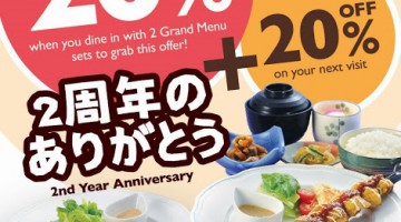 20% discount when you dine 2 set of Grand Menu items + 20% discount on your next visit in Waku Waku … [Read more...] about 2ND ANNIVERSARY PROMOTION AT WAKU WAKU