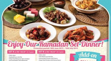 Enjoy the Grandmama's Ramadan Dinner Set from RM108+ - RM368+ (suitable for 2 - 10 pax). Choice of 4 sets available. Set A @ RM108.00+ (2-3 pax) Seafood Curry Hot Pot Deep-fried Malaysian Spice Chicken Stir Fried Kailan with Salted Fish Set B @ RM198.00+ (4-5 pax) Fish Head Curry Hot Pot Homemade Tomato Chili Prawns Deep-fried Chicken with Honey Sauce Paku … [Read more...] about RAMADHAN SET PROMOTION @ GRANDMAMA’S AVENUE K