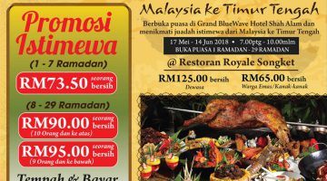 Share the spirit of togetherness with family and friends at Dorsett Putrajaya. Be sure to follow the alluring aroma of tantalising traditional delights and savour over 500 authentic dishes, lavish Durian Buffet and succulent Barbecue Venison. A great feast that you will not want to be missed this year! Available from 18 May - 13 June 2018. RM138 nett per adult RM78 … [Read more...] about Berbuka Puasa @ Dorsett Hotel Putrajaya