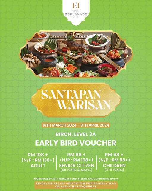 Festive season never ends. Once one finished, started another. This year, once again, we bring back the “Tradisi Warisan” to live. The chef gathers a set of menus that brings you to a satisfaction crave from 12 March until 8 April. 📣 Early Bird Price - until 20 March 📣 RM138nett per adult | RM108nett per child & senior citizen Normal Price RM168nett per adult | RM138 … [Read more...] about Tradisi Warisan @ Four Points by Sheraton Puchong