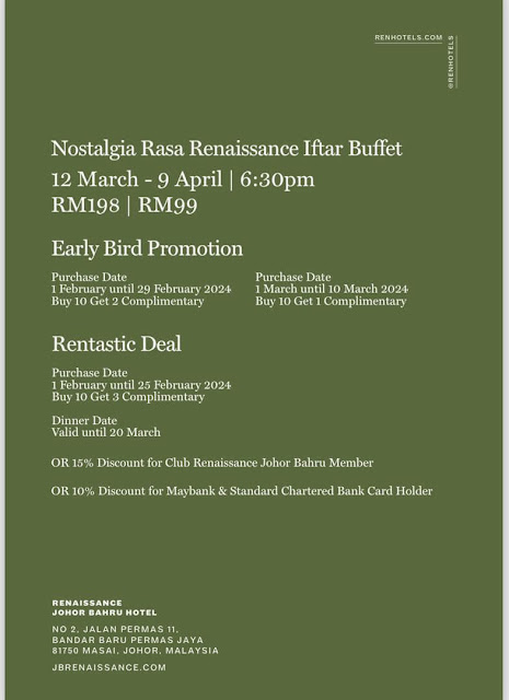 Ramadhan Buffet 2024: Nostalgia Rasa Renaissance @ Cafe BLD, Renaissance Johor Bahru