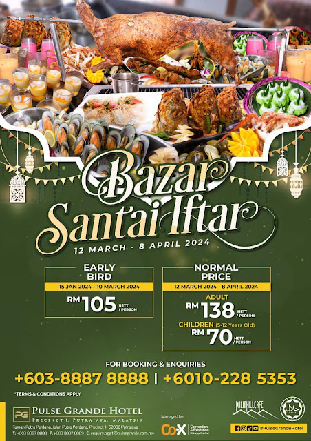 Call now at 03 8887 8888 or WhatsApp 010-228 5353 for booking … [Read more...] about Ramadhan Buffet 2024: Bazar Santai Iftar @ Pulse Grande Hotel Putrajaya