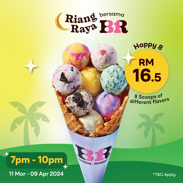 Gather your friends and family and hang with us at Baskin-Robbins after you’ve buka puasa! 💚 Dig into Happy 8 – a cone buffet with 8 scoops of different flavors for everyone to share and enjoy. Because sharing is caring! 🕒 From 7-10pm Bring everyone, and we’ll see you at your nearest B-R store! … [Read more...] about Ramadhan 2024 : Riang Raya bersama Baskin Robbins