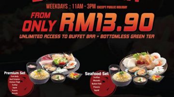 Enjoy the Rocku Super Value Set Lunch from RM13.90 with unlimited access to buffet bar and bottomless green tea. ✔️Available on weekdays from 11am - 3pm (except public holidays). ✔️Reservation for set lunch is not available. ✔️Only at Rocku 1 Utama. … [Read more...] about Super Value Set Lunch @ Rocku 1 Utama