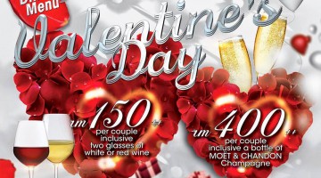 MOVIDA presents The VALENTINE'S DAY Special Menu on 14th February 2015, Saturday. Enjoy Our Valentine Set Dinner for 2 for RM 150++ Only. VALENTINE PACKAGE:- Valentine Set Dinner for 2 persons @ RM 150++ inclusive of a glass of white or red wine each -or- Purchase a Bottle of Moet & Chandon Champagne @ RM 400++ and Get a Valentine Set Dinner for 2 for FREE! Enjoy Our … [Read more...] about CELEBRATE VALENTINE’S DAY @ MOVIDA