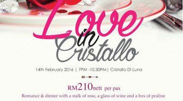Spoil your loved one and feel the romance in the sky with the dramatic view of the city as we’ve got romance covered this February. Experience a leisure and romantic Valentine’s Day dinner at Cristallo di Luna. Located opposite the famed KL Tower entrance, Cristallo di Luna is a hidden crystal on the thirty fourth level of the award winning hotel; Pacific Regency Hotel … [Read more...] about LOVE IN CRISTALLO