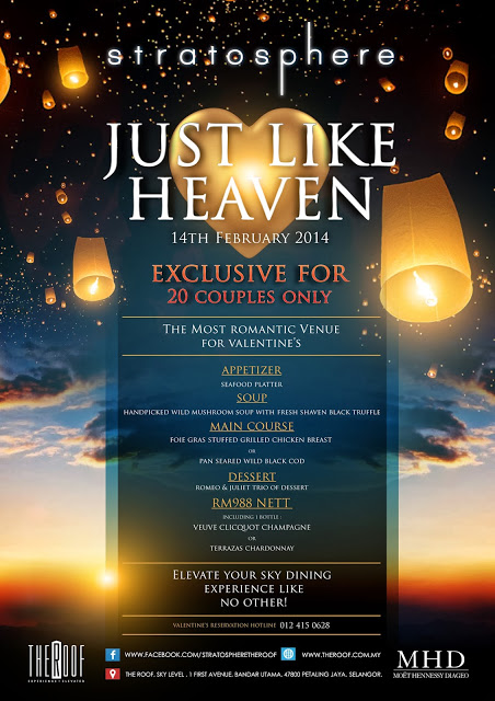 Address: Stratosphere Sky Level, 1 First Avenue, Bandar Utama, 47800 Petaling Jaya, Selangor Facebook : www.facebook.com/TheRoofMalaysia Website : www.theroof.com.my Instagram : #theroofmalaysia Twitter : #theroofmalaysia … [Read more...] about JUST LIKE HEAVEN AT STRATOSPHERE FOR VALENTINE
