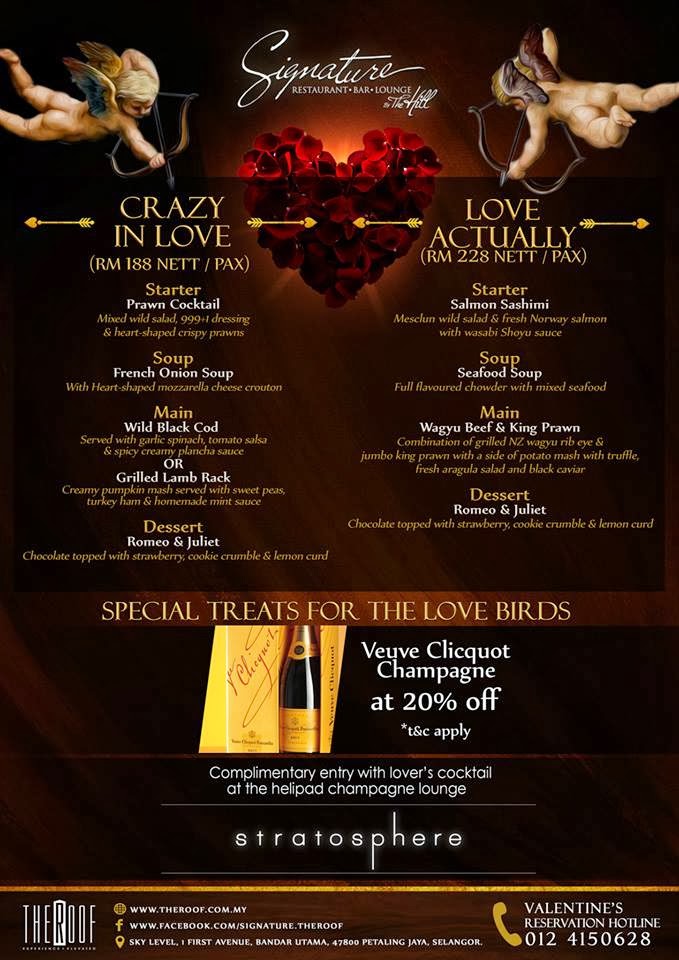 Address: Sky lounge, 1 First Avenue Bandar Utama 47800 Petaling Jaya, Malaysia Phone 016-229 1505 Email [email protected] Website http://www.theroof.com.my … [Read more...] about VALENTINE PROMOTION AT SIGNATURE, THE ROOF