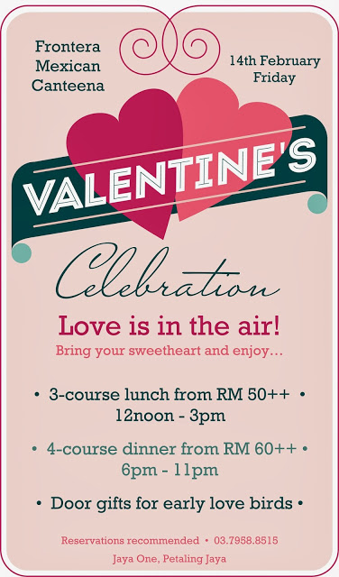 Venue: Frontera Sol of Mexico Location: Jaya One, 72A Jalan Universiti, 46200 PJ Tel: 03.7958.8515 Email: [email protected] … [Read more...] about VALENTINE’S AT FRONTERA, A MEXICAN AFFAIR