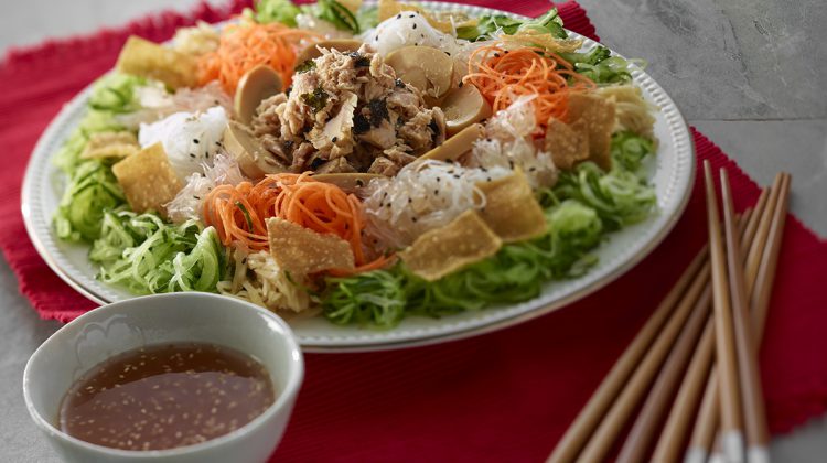 INGREDIENTS • 100 g Ayam Brand Tuna chunks in organic olive oil (or can add more tuna) • 1 Can Ayam Brand Mushrooms, drained and chopped • 12 pcs wonton skins • ¼ cup thinly sliced pickled ginger • 1 lebanese cucumber • 1 carrot • 1 small daikon/white radish • 1/2 tablespoon black sesame, roasted and cooled • 1/2 tablespoon white sesame, roasted and … [Read more...] about CHINESE NEW YEAR RECIPES 2018 WITH AYAM BRAND : Tuna Yee Sang
